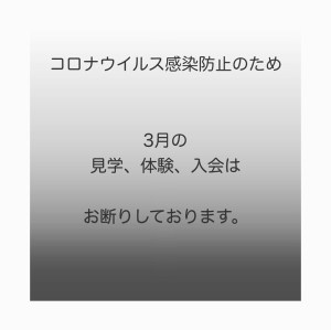 ちなみに3月は、「新型コロナウイルス拡大防止」のため、新規見学、体験、入会はお断りしております。